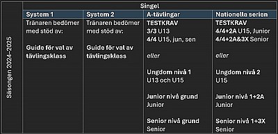 Inför säsong 24/25 ändras tävlingsbenämningarna från tidigare A-tävling, Klubbtävling och Stjärntävling till A-tävling, System 2-tävling och System 1-tävling.